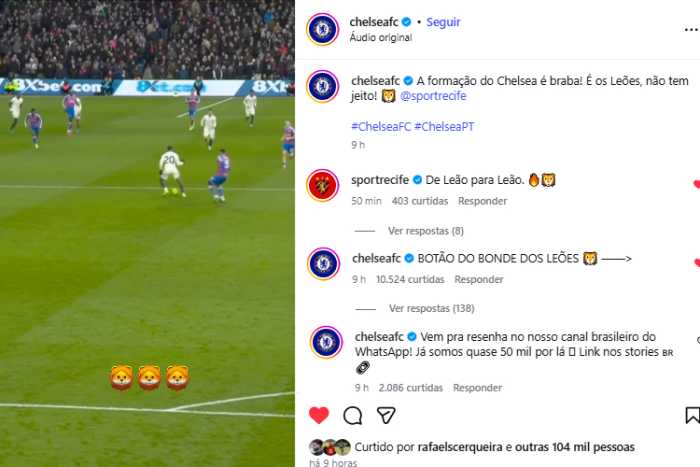 Foto: Reprodução Uma publicação do Chelsea nas redes sociais chamou a atenção de torcedores brasileiros ao citar o Sport. A postagem do clube inglês surgiu após a conquista do tetracampeonato pernambucano pelo time do Recife no último domingo e rapidamente repercutiu entre internautas.